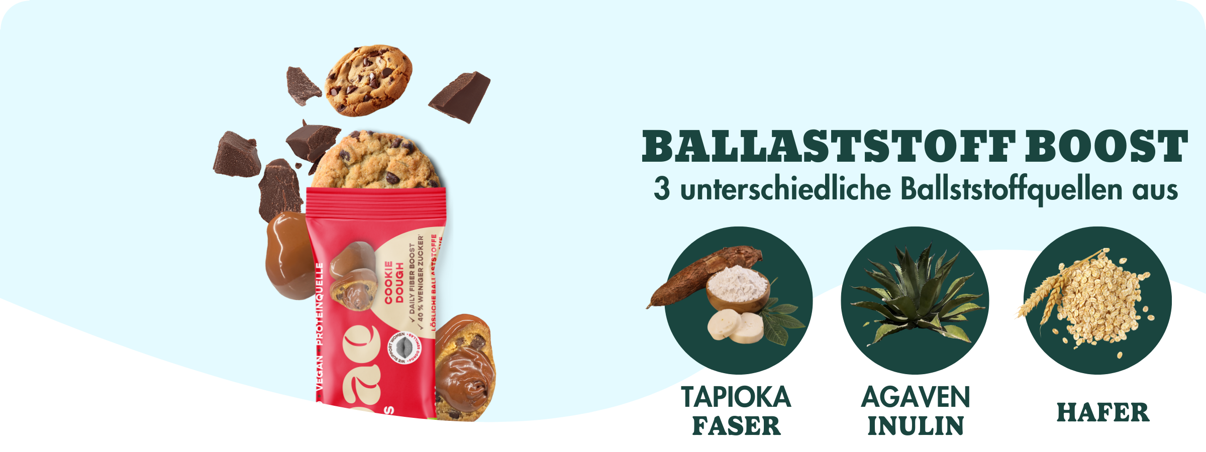 ✔ 40 % weniger Zucker ✔ Hoher Ballaststoffgehalt ✔ Proteinquelle ✔ Bio & vegan
