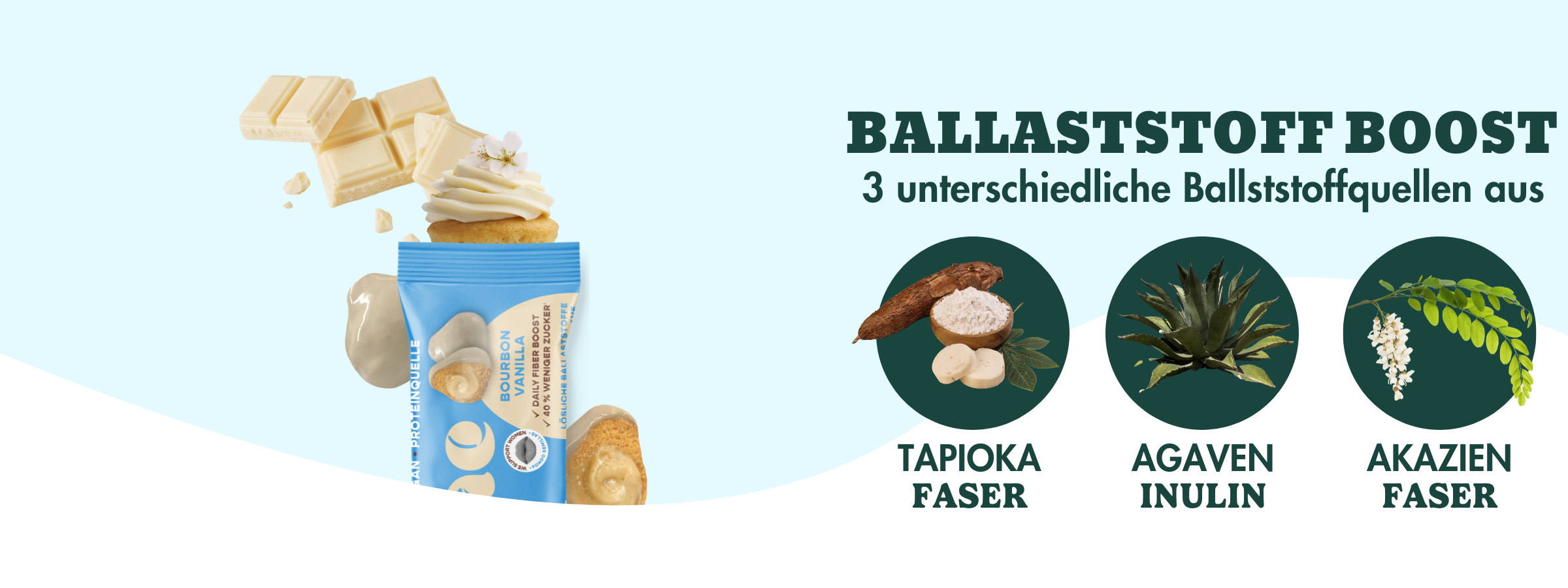 ✔ 40 % weniger Zucker ✔ Hoher Ballaststoffgehalt ✔ Proteinquelle ✔ Bio & vegan