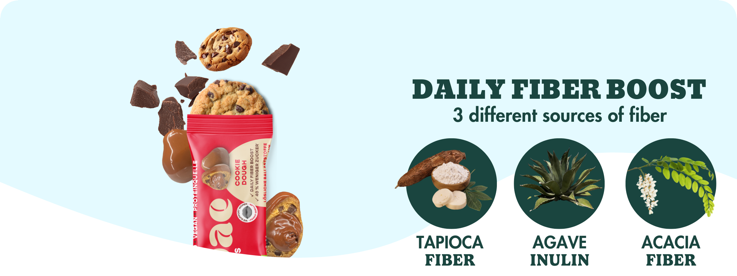 ✔ 40% less sugar ✔ High in fiber ✔ Source of protein ✔ Vegan